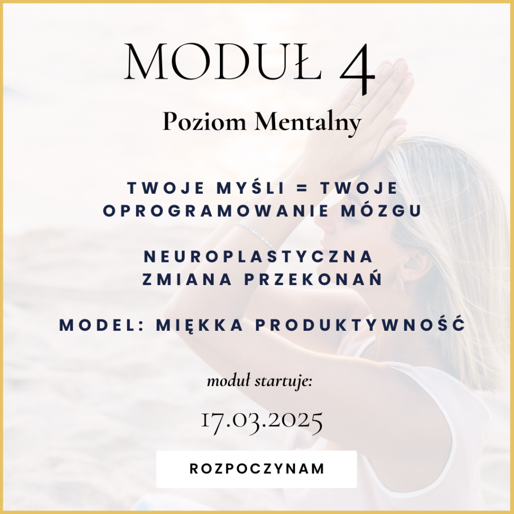 Przed Tobą 6-tygodni fascynującej pracy oraz poznawania tajników swojej psychiki i układu nerwowego. To, co wydarzy się na poziomie rzeczywistym (kilka dodatkowych godzin w tygodniu, spokój wewnętrzny i połączenie z radością, którą niosą codzienne małe-wielkie chwile) będą po prostu odzwierciedleniem zmian, które zadziały się głębiej.